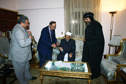 With Grand Imam of Al Azhar Sheikh Mohamed Sayed Tantawi; Pope Shenouda III; and Fathi Sorour, speaker of the People’s Assembly