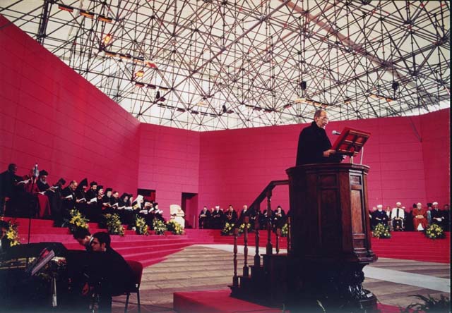 Reading a message from Grand Imam of Al Azhar Sheikh Mohamed Sayed Tantawi, in the presence of Pope John Paul II