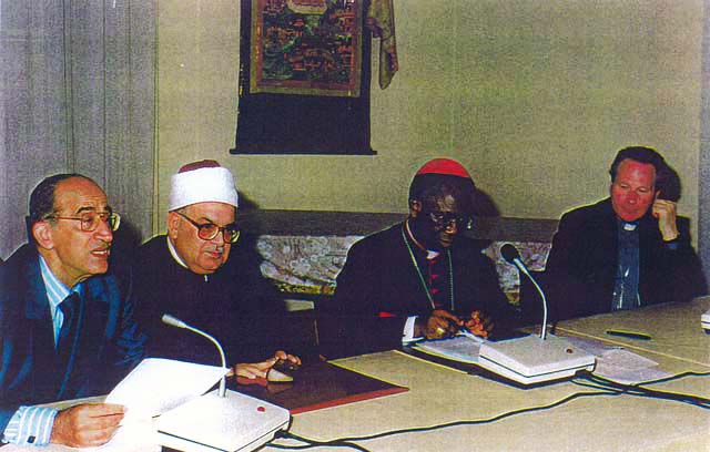 With Pope John Paul II; Al Azhar’s Sheikh Zefzaf; the Vatican’s Cardinal Arinze, President of Pontifical Council for Interreligious Dialogue and Father Michael Fitzgerald