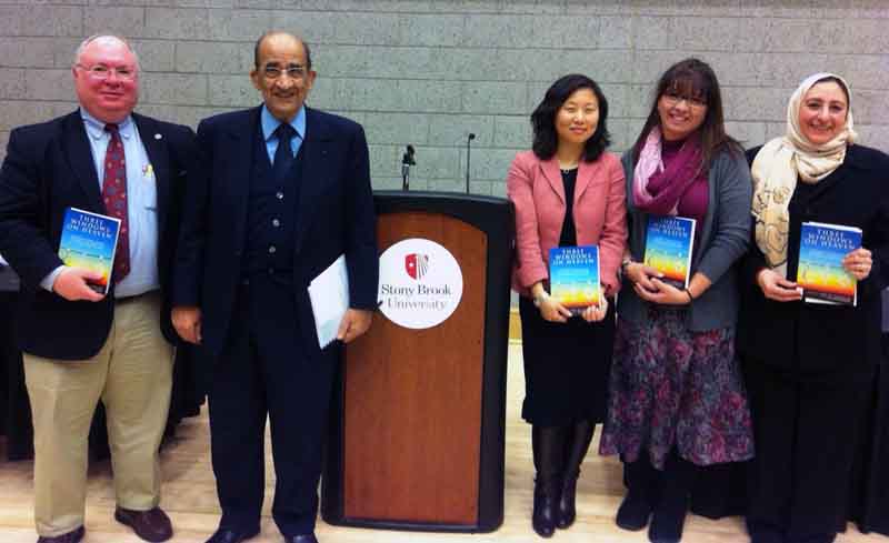 Rabbi Joseph Topek (chairman or Interfaith Center of Hillel for Jewish Campus Life), Dr. Aly El-Samman (president of ADIC), Helen Chueng (Asian Christian Campus Ministry), Joanne Buonocore (Catholic Campus Ministry) and Sanaa Nadim (Chaplain of the Islamic Society of the Interfaith Center at Stony Brook University)