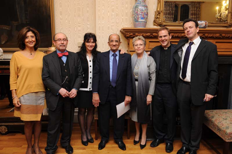Mrs. James Watt, Adel Darwish, Dr. Marie-Laure Mimoun-Sorel, Dr. Aly El-Samman (president of ADIC), Mrs. El-Samman, Rev. Dr. Toby Howarth (secretary of interreligious affairs to the archbishop of Canterbury, and Max Scott (Gilgamesh Publishing)