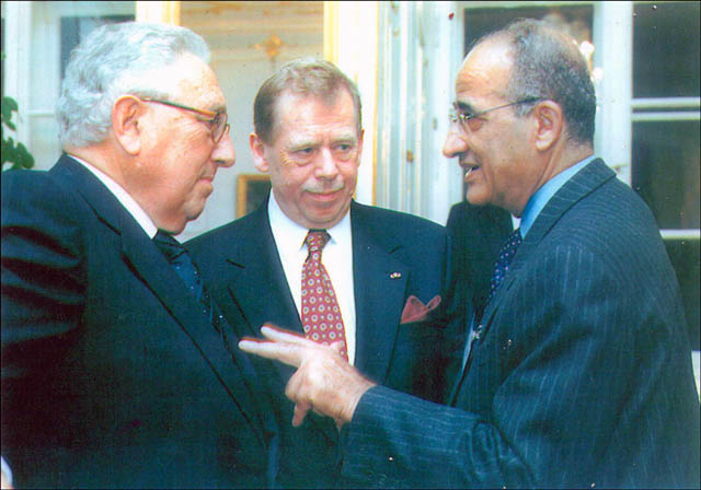 Speaking with Czech President Vaclav Havel and Henry Kissinger, former U.S. Secretary of State at the World Economic Forum