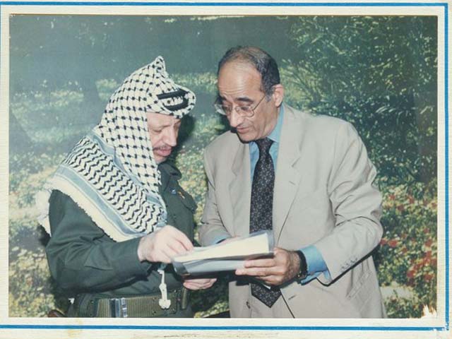 Tunis with Yasser Arafat With Yasser Arafat at his home, showing him the resolutions from the Sorbonne Conference Tunisia (1994)
