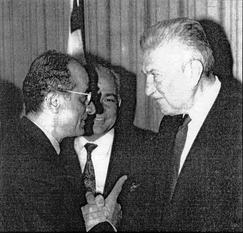 Israel with Weizmann and Bassiouni With Israeli President Chaim Weizmann and Mohamed Bassiouni, Egyptian Ambassador to Israel Tel Aviv (1994)