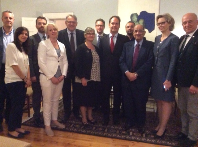 Peter Wiederud, Director of Swedish Institute in Alexandria; Aly El Samman, president ADIC; Kenneth Forslund, Chairman of Committee of Foreign Affairs of Swedish Parliament; and members of the Committee